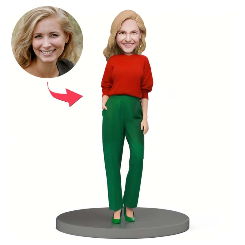 聖誕禮物訂製搖頭女人穿著紅色和綠色聖誕時尚套裝