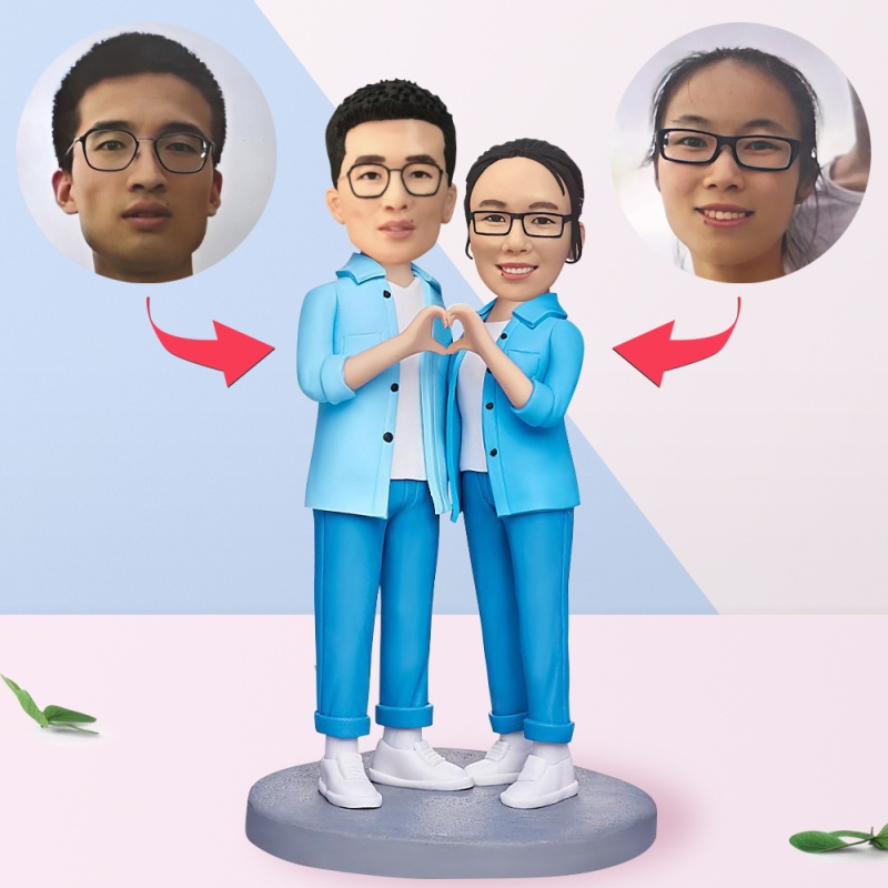 情侶手牽手 擺出心形 情侶訂製 七夕禮物 定制搖頭軟陶人偶公仔