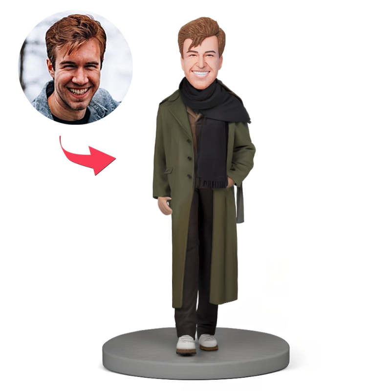 訂製搖頭時尚男士深綠色外套搭配黑色圍巾
