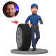 客製化搖頭公仔 英俊的汽車工程師,靠在輪胎上的汽車修理工 公仔
