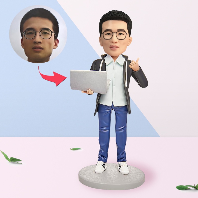 商務禮品男軟件工程師,帶電腦定制搖頭人偶 可添加文字