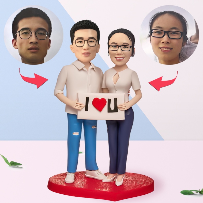 定制情侶搖頭人偶 手裏拿著 我愛你 的牌子,可添加文字